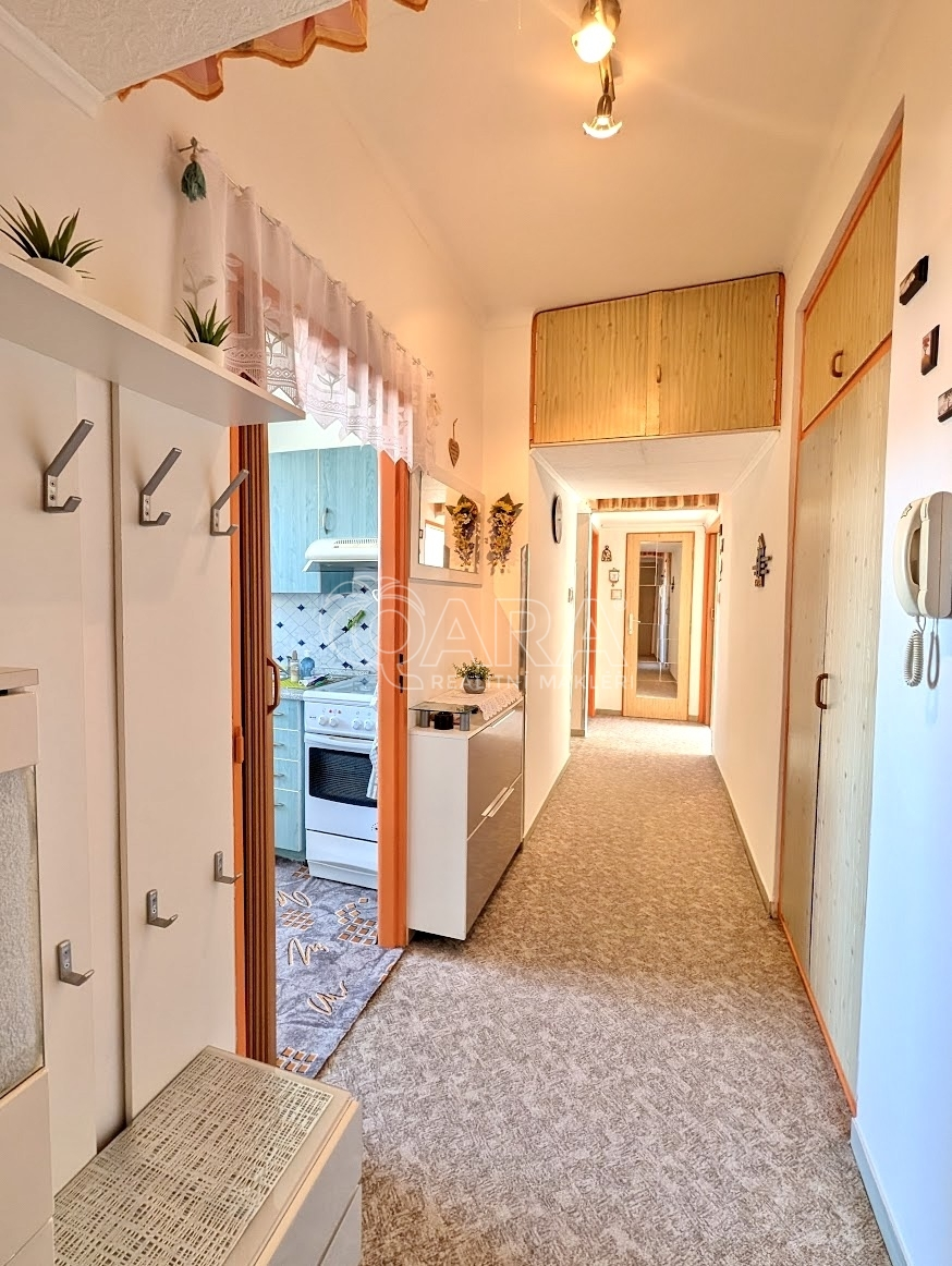 Nabízíme k prodeji prostorný a slunný byt o dispozici 2+1 (69,05 m²) ve 3. patře cihlového domu bez výtahu v Červenkově ulici v centru Přeštic. Lokalita nabízí kompletní občanskou vybavenost – přímo naproti domu je lékárna a park s dětským hřištěm, náměstí je vzdálené jen pár desítek metrů. Velkým bonusem je výhled na místní kostel a město, který vás neomrzí v žádném ročním období.
