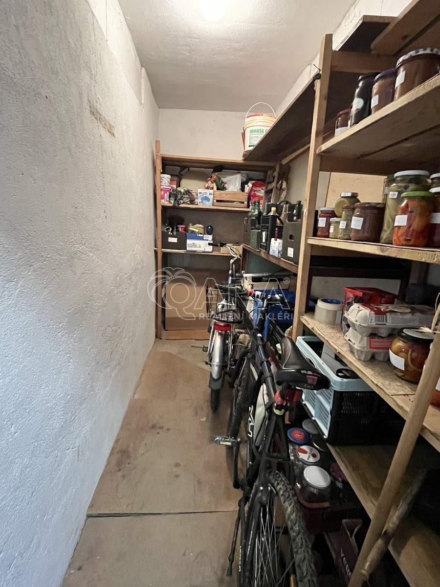 Sklep: K bytu náleží velký zděný sklep (5,3 m²) ideální pro kola a sportovní vybavení.