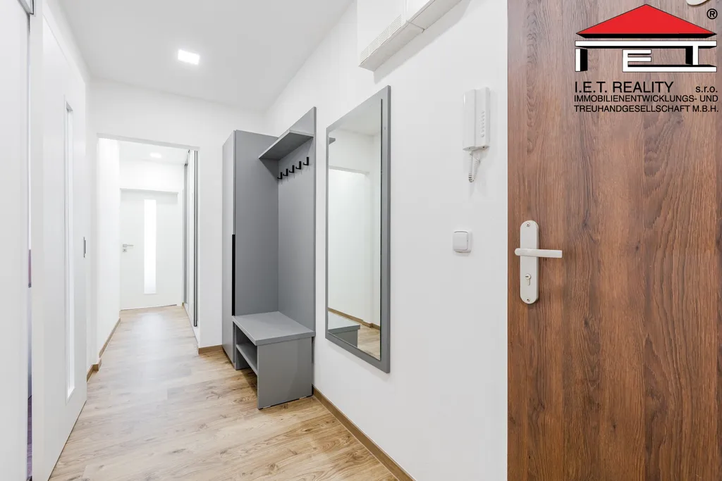 Byt prošel kompletní rekonstrukcí – nová elektroinstalace, moderní koupelna a WC, vinylové podlahy, podhledy s LED osvětlením, nová kuchyňská linka ve tvaru L včetně vestavěných spotřebičů. Plastová okna, nové interiérové dveře, bezpečnostní vstupní dveře.