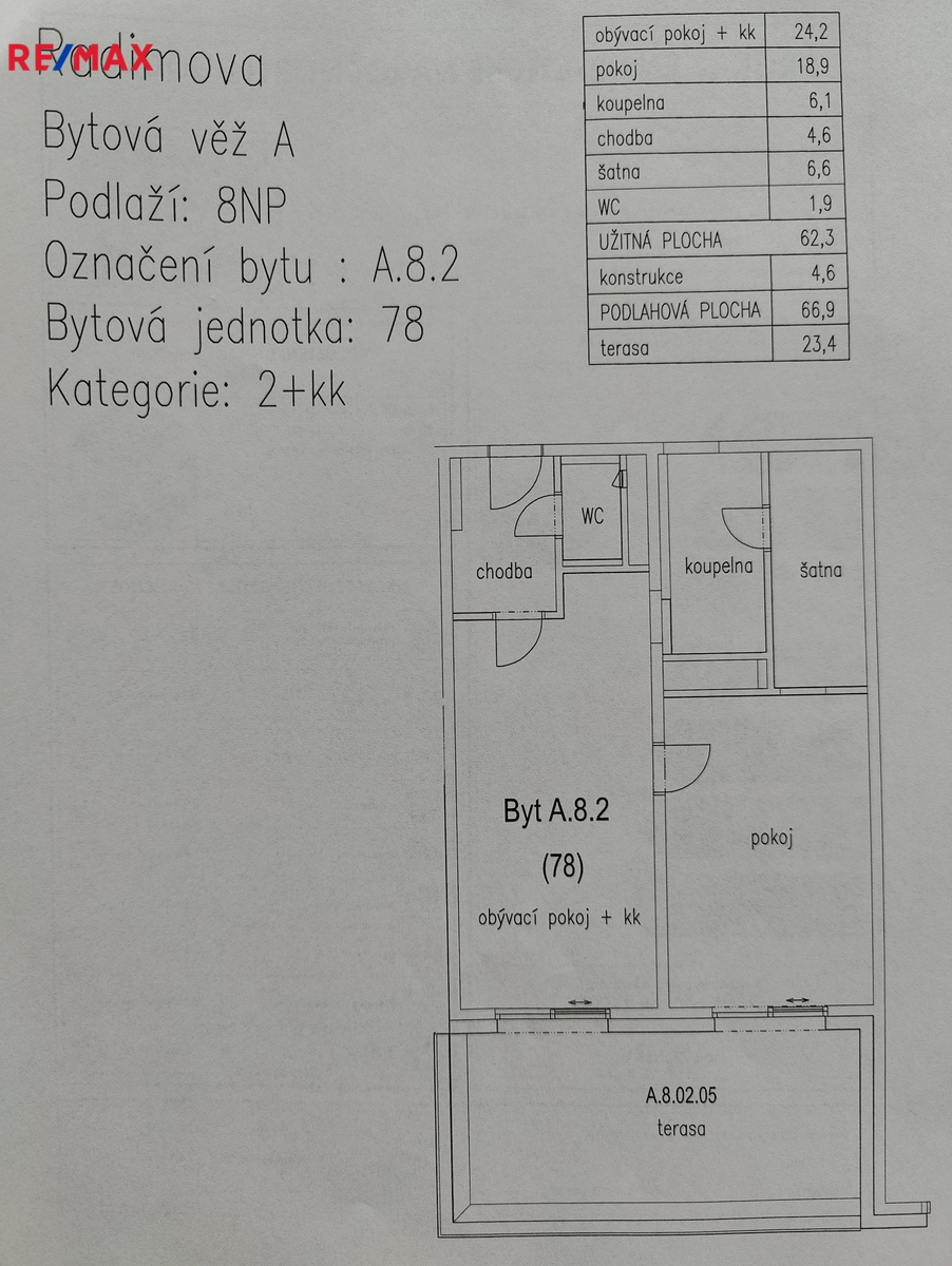Nabízíme k prodeji výjimečný byt 2+kk s unikátní polohou i dispozicí o celkové ploše 67 m², doplněný o prostornou terasu 24 m², podzemní nadstandardní parkovací stání a velkou sklepní místnost o velikosti 7,8 m².