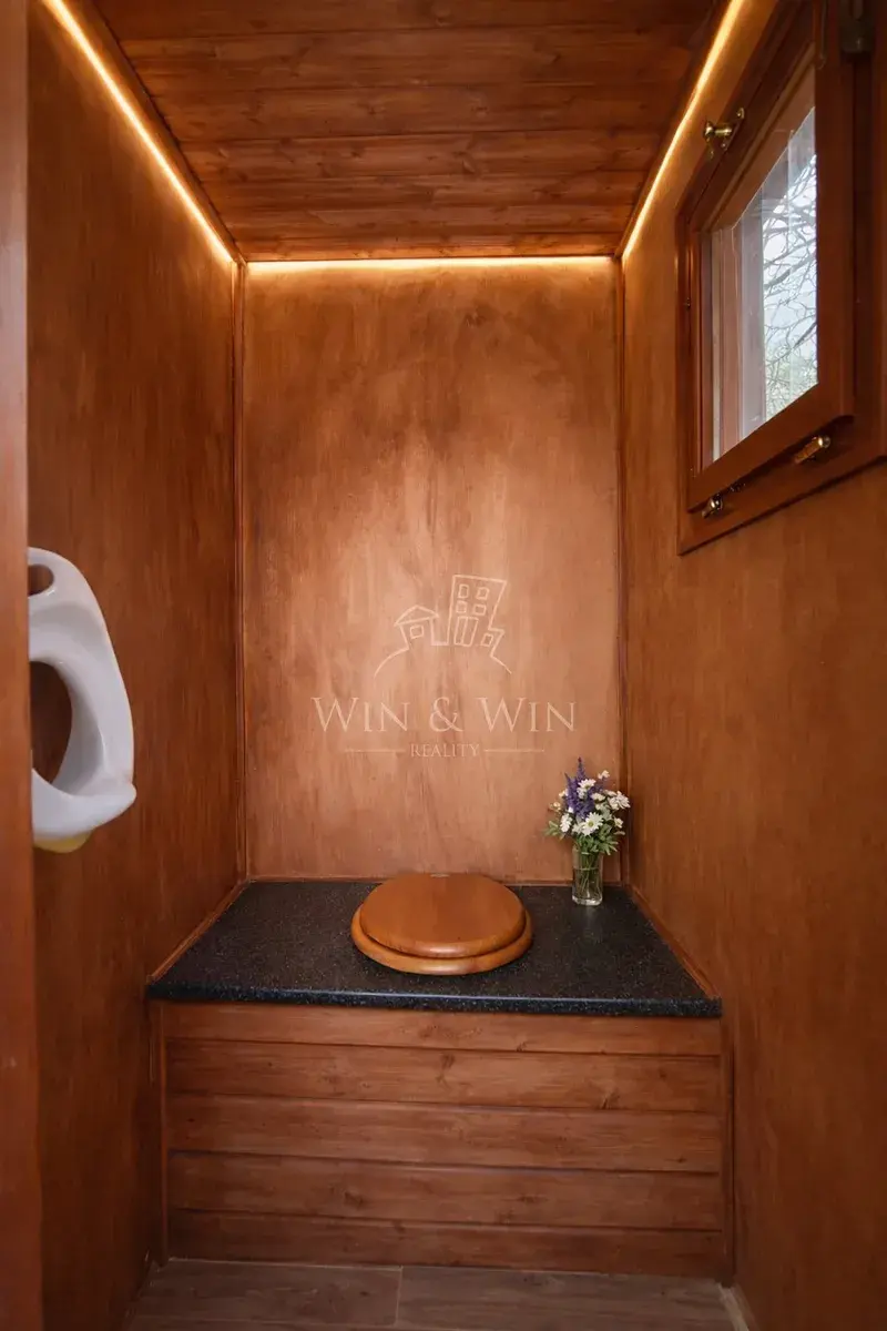 Na pozemku stojí zahradní drobná stavba po rekonstrukci (2023) se dvěma místnostmi a novou lehkou bitumenovou střechou s dlouhou životností. Slouží jako praktické zázemí pro víkendový pobyt nebo zahradničení.