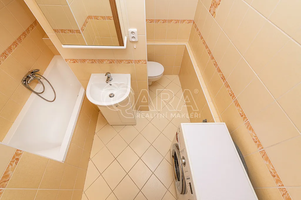 Byt je po rekonstrukci. Je vybaven kuchyňskou linkou s plynovou varnou deskou a troubou. Jádro je zděné, toaleta je spojená s koupelnou, která disponuje vanou a místem pro pračku. Vytápění a ohřev vody je centrální z vlastní plynové kotelny. Na podlahách je dlažba, vinil a v ložnici dřevěné parkety ve velmi dobrém stavu. Byt je vymalován a pečlivě uklizen.