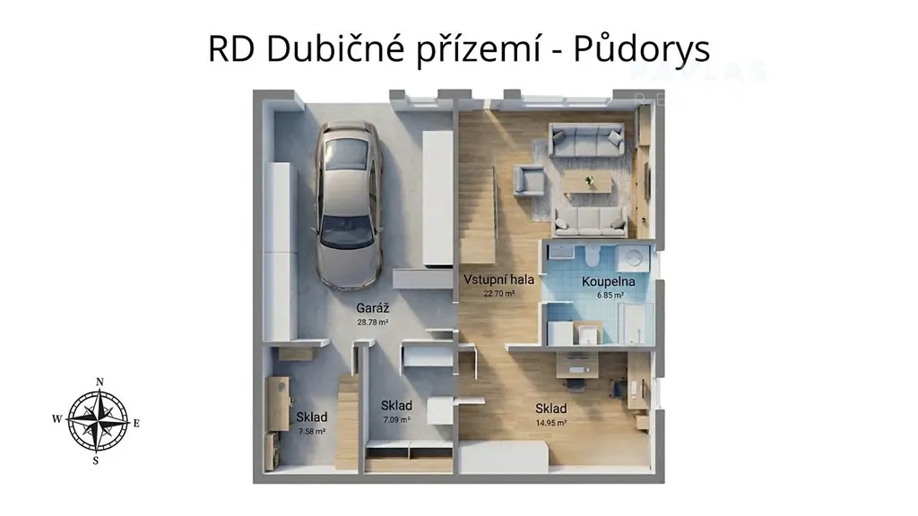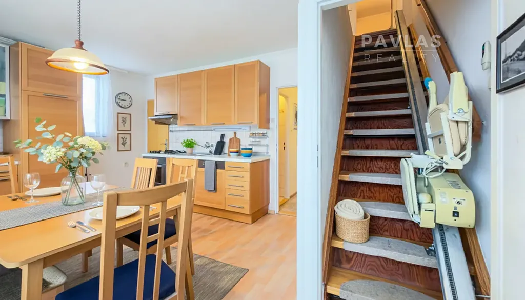 Architektonické řešení domu přímo vybízí k rozdělení na nezávislé sekce. Suterénní podlaží o ploše 83,5 m2 disponuje garáží a obytnou místností s koupelnou, což tvoří ideální základ pro menší jednotku typu 1+kk nebo ateliér. První a druhé nadzemní podlaží shodně nabízejí plochu 96 m2 s dispozicí 3+1, přičemž horní patro je již vybaveno samostatným vchodem, což je pro nájemní provoz klíčovým benefitem. Technická příprava pro kuchyňskou linku v nejvyšším patře a přítomnost celkem tří koupelen v domě výrazně zefektivňují proces finalizace jednotlivých bytů a snižují počáteční investiční náklady na stavební úpravy.