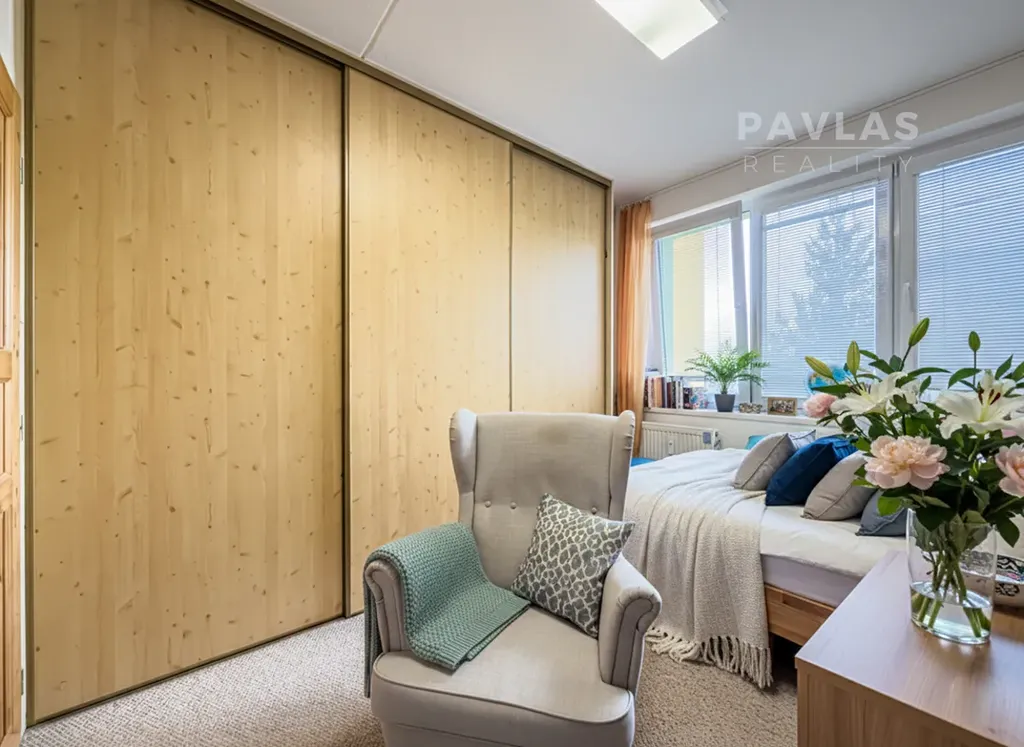 Samotný byt je situován v šestém patře kompletně revitalizovaného osmipatrového panelového domu. Díky vkusné rekonstrukci nabízí interiér hřejivou atmosféru, kterou podtrhují použité přírodní materiály. V každé místnosti naleznete dřevěné podlahy nebo příjemné koberce, které ladí s dřevěnými obložkami a interiérovými dveřmi z masivu. Tento důraz na detail dodává bytu pocit solidnosti a skutečného tepla domova. Kuchyně a koupelnové jádro prošly modernizací a jsou připraveny k okamžitému užívání.