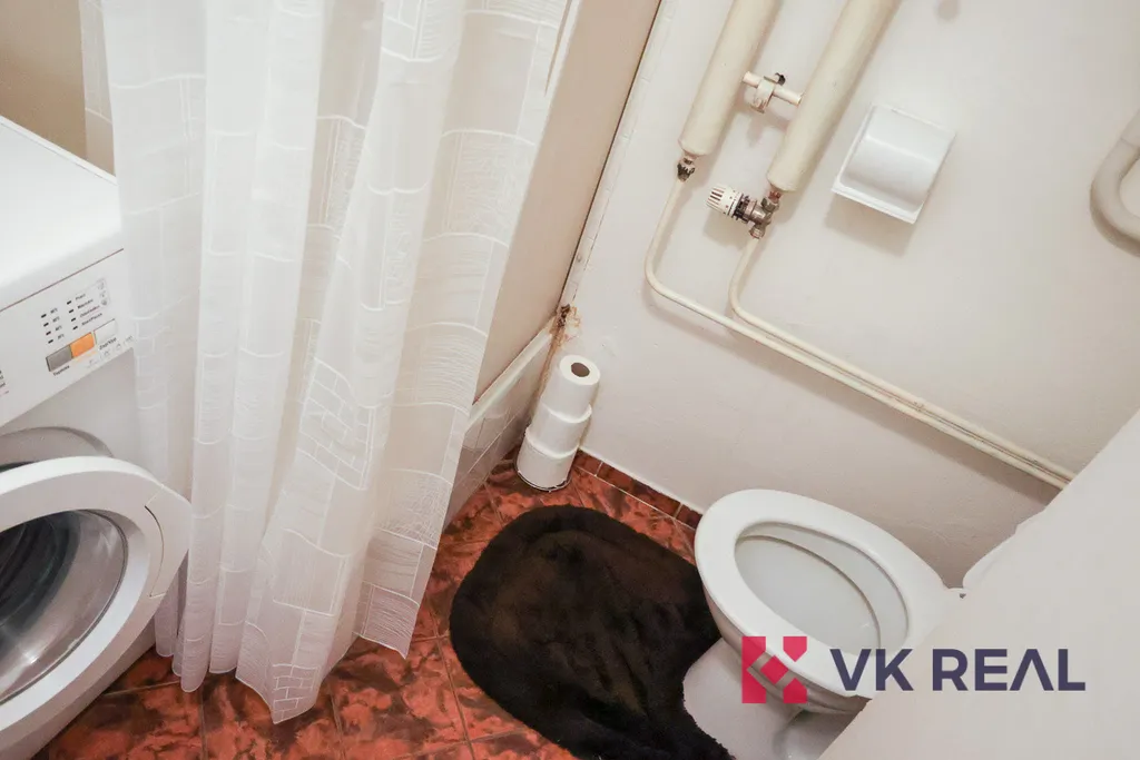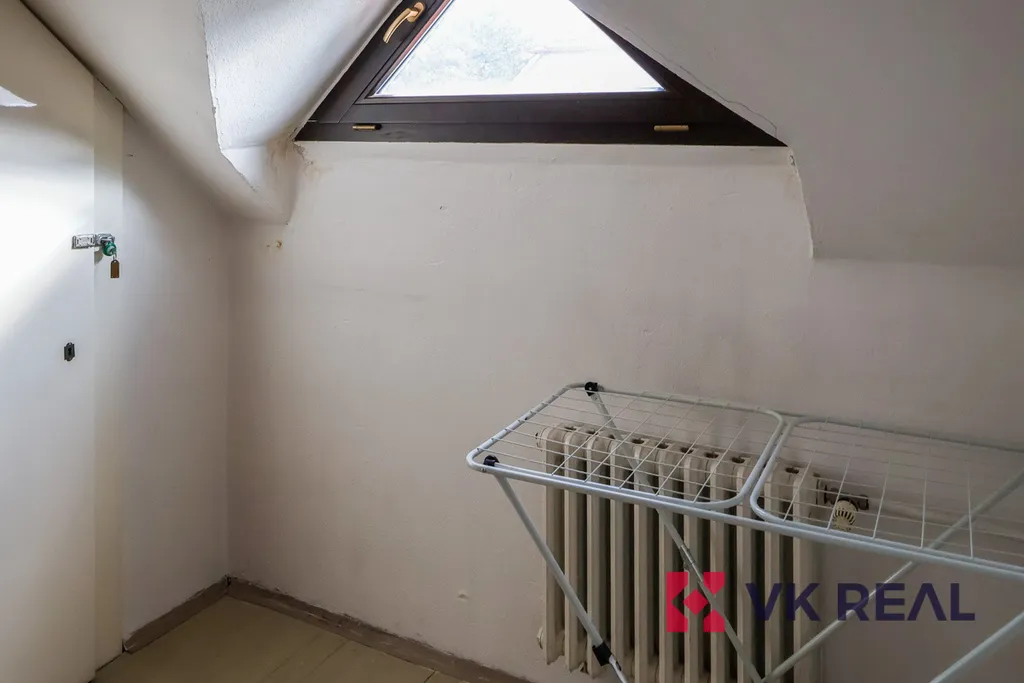 Součástí bytu je samostatná komora s oknem, vybavená šatní skříní, která nabízí dostatek úložného prostoru. Koupelna je řešena sprchovým koutem společným s WC.