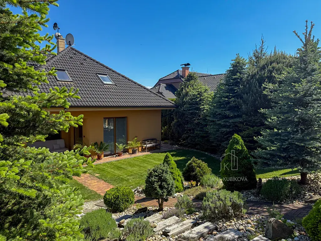 Pozemek je oplocený zděným plotem, který lemují okrasné stromy, poskytující naprosté soukromí. Okrasná zahrada s kompletně upraveným terénem je nejen krásná, ale i praktická – najdete zde zvýšené záhony pro pěstování sezónních plodin, automatické zavlažování po celé ploše a rozvod vody po dvoře.