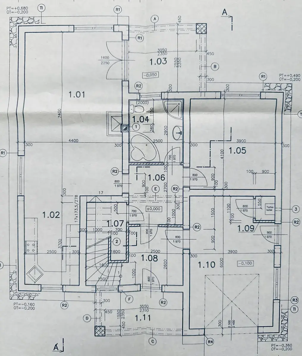 Do domu vstoupíte přes kryté zádveří, odkud je přístup buď do garáže (s dálkově ovládanými vraty G-mont), nebo do obytné části. Garáž má navíc i vlastní vstup z boku domu, který přímo navazuje na dvorek a zahradu. V zádveří vede schodiště do podkroví a vstup do haly, ze které se rozbíhá celý přízemní prostor.