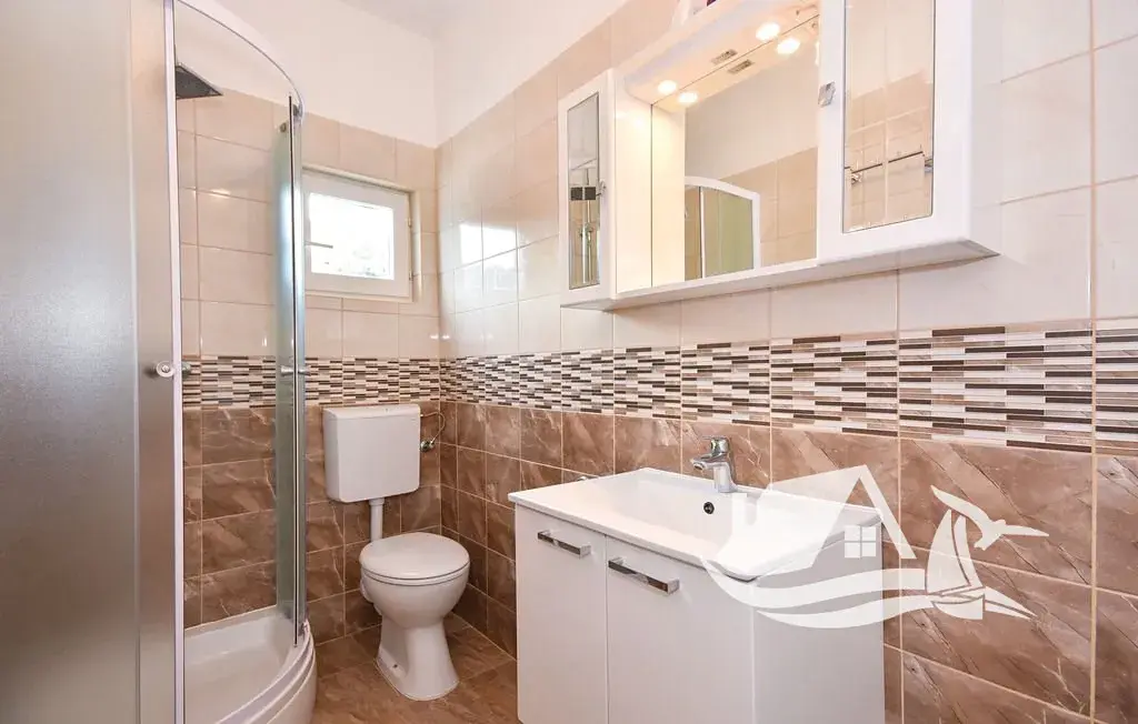 Rovný pozemek o rozloze 753 m² nabízí dostatek prostoru, soukromí a otevřený výhled na celé Jaderské moře. Dům s obytnou plochou 260 m² disponuje pěti pokoji, samostatným apartmánem a dvěma velkými terasami o 40 a 50 m², odkud je výhled jako z pohlednice. Čtyři koupelny, dvě kuchyně a velkorysý obývací prostor pohodlně zvládnou rodinné oslavy, letní návštěvy i plně obsazenou sezonu. Součástí je garáž o 80 m², sklep, technické místnosti, venkovní bazén, jacuzzi, fitness zázemí i prostor pro loď. Parkování pro více než osm aut, klimatizace, rychlý internet a možnost vytápění krbem nebo kamny zajišťují komfort po celý rok.