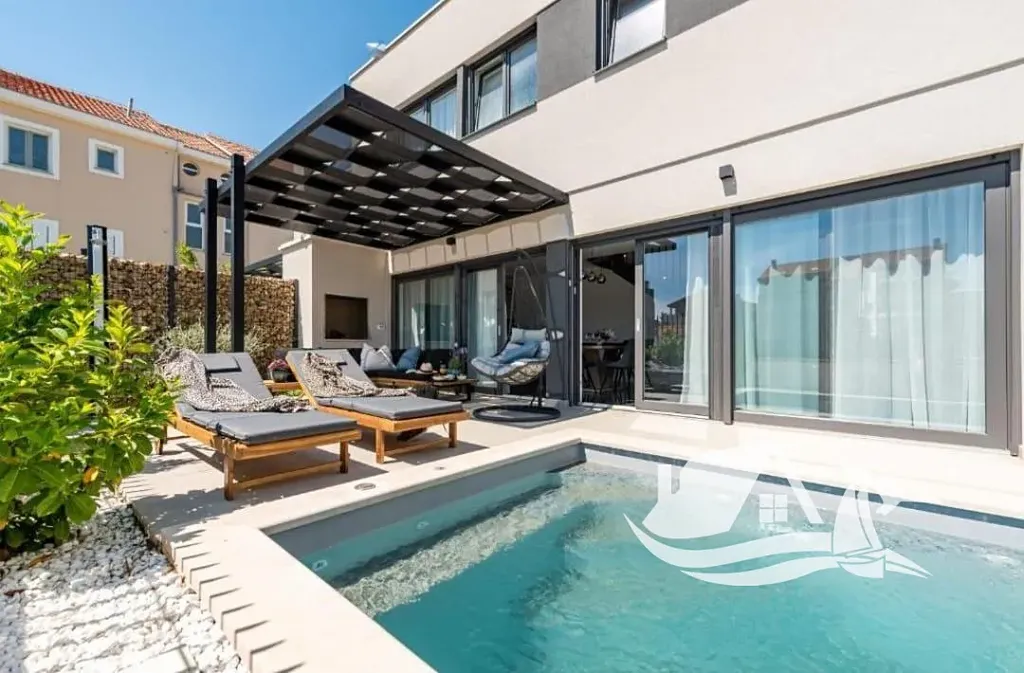 V klidné části oblíbené přímořské obce Privlaka vznikl v roce 2024 moderní dvojdům, které dávají smysl jak pro vlastní užívání, tak jako dlouhodobá investice. Dům se nachází přibližně 50 metrů vzdušnou čarou od moře, takže slaná vůně a pohled na hladinu patří k běžné denní rutině, nikoliv ke svátečním výjimkám.