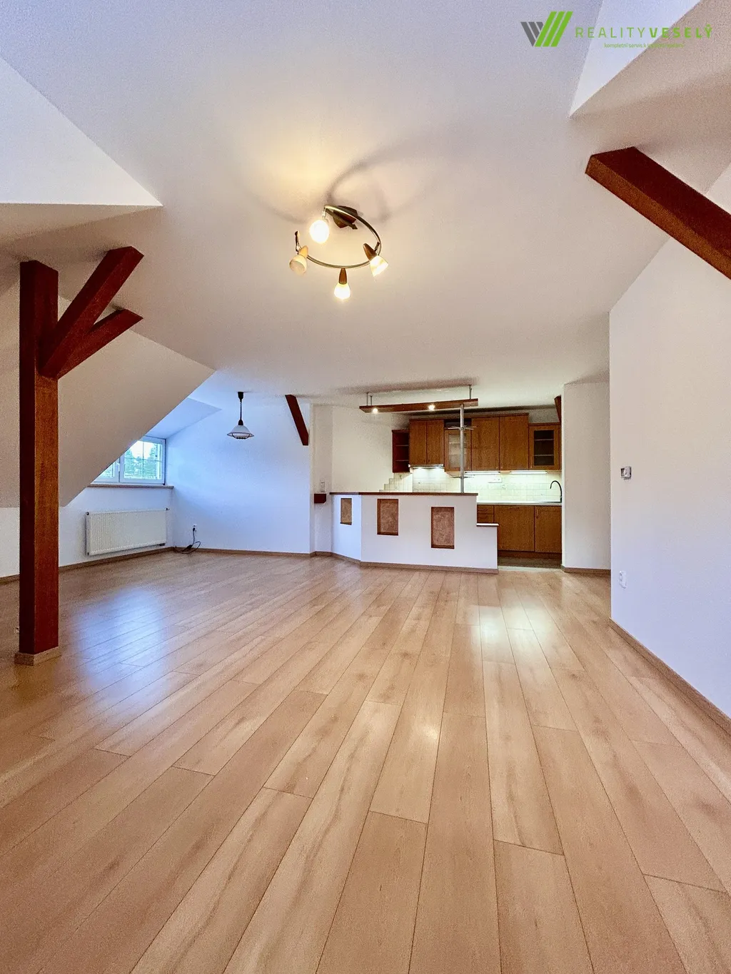 Nabízíme k pronájmu prostorný a útulný podkrovní byt 2+kk o výměře 75 m² ve Veselí nad Moravou, umístěný ve 2. NP. Byt se nachází v těsné blízkosti centra města a nedaleko kompletní občanské vybavenosti. Je po velmi zdařilé kompletní rekonstrukci a k nastěhování bude připraven od 1. 3.