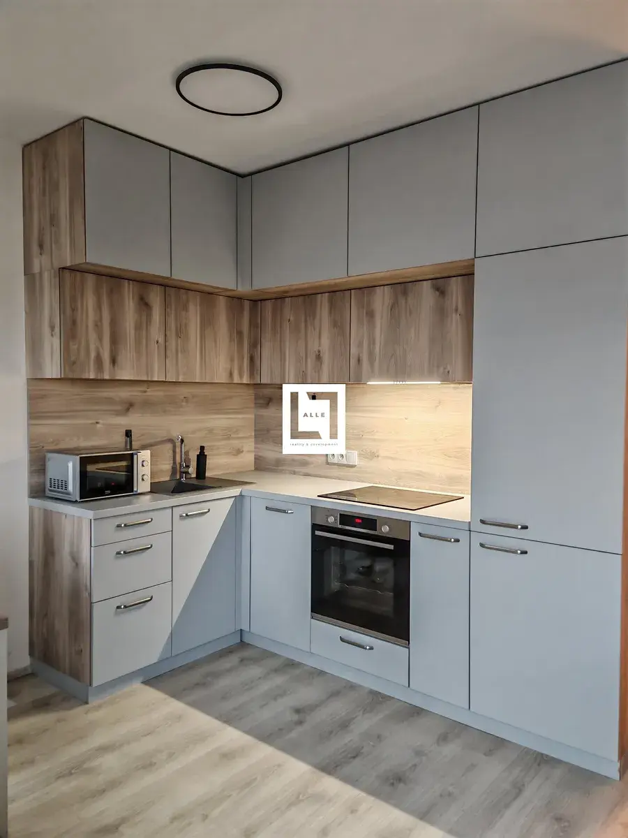 Ve vstupní chodbě bytu je velký prostor pro šatní skříň. Z chodby je samostatný vstup do koupelny se sprchovým koutem a WC a dále do průchozího obývacího pokoje s kuchyňskou linkou a dostatečným prostorem pro jídelní stůl. Z obývacího pokoje je vstup do ložnice, ve které je místo pro vestavěné skříně nebo pracovní kout.