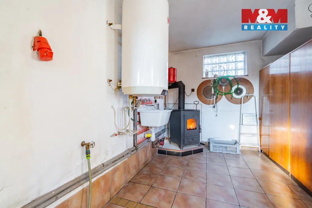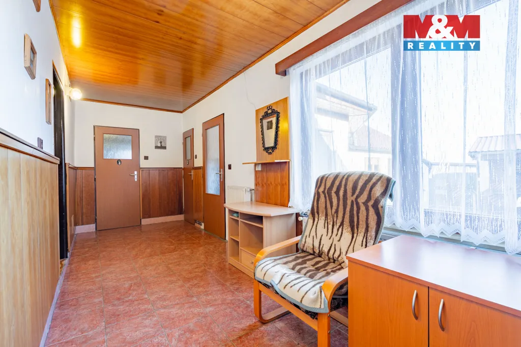 Dále disponuje dvěma neobytnými místnostmi, z nichž jedna slouží jako vstup na půdu a zároveň k uložení dřeva.