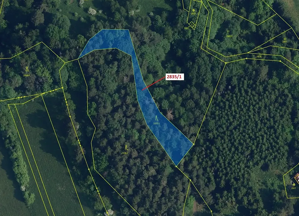 Lesní pozemek o výměře 2117 m2, parcelní číslo 2835/1, podíl 1/1, katastrální území Český Dub, obec Český Dub, obec s rozšířenou působností Liberec, okres Liberec, Liberecký kraj. Po těžbě.