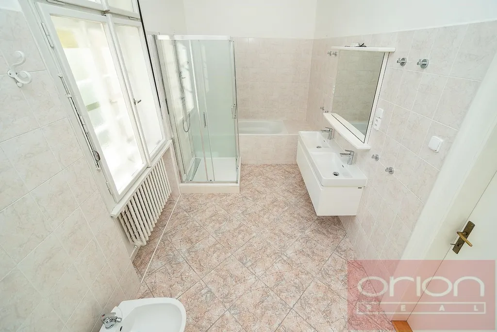 Nabízíme k pronájmu exkluzivní, nezařízený byt 6+1 o celkové ploše 274 m² s terasou, situovaný v 1. patře kompletně zrekonstruované reprezentativní neobarokní vily v prestižní rezidenční čtvrti v Praha 6.Byt disponuje vstupní halou, velkorysou společenskou místností se vstupem na terasu o velikosti 26 m² s výhledem do pečlivě udržované zahrady, prostorným obývacím pokojem s jídelnou, plně vybavenou kuchyní, čtyřmi ložnicemi, dvěma koupelnami, komorou, prádelnou s pračkou a samostatnou toaletou.