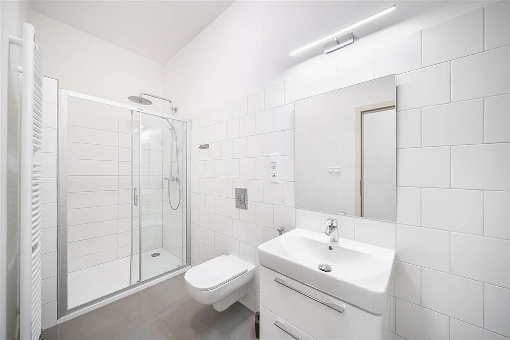 Při rekonstrukci byly použity prémiové materiály a kvalitní zařizovací předměty. Byt je vybaven kuchyňskou linkou včetně vestavěné myčky nádobí. K dispozici je také příjemné posezení ve vnitrobloku.