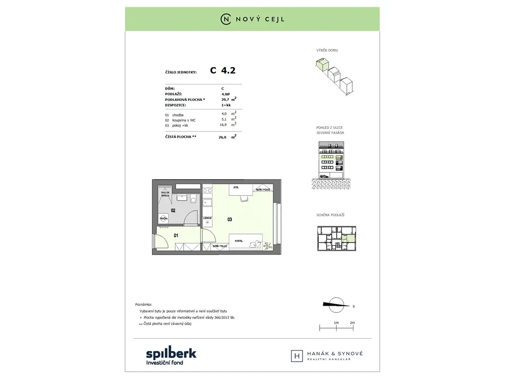 K dlouhodobému pronájmu Vám nabízíme nový, krásný, světlý, moderní ateliér 1+kk v osobním vlastnictví v novostavbě bytového domu na ulici Cejl, Brno. Ateliér o ploše 27m2 je umístěn ve 4.NP cihlového domu s výtahem a je orientován na sever do klidného vnitrobloku a náleží k němu sklep o výměře 2,3m2