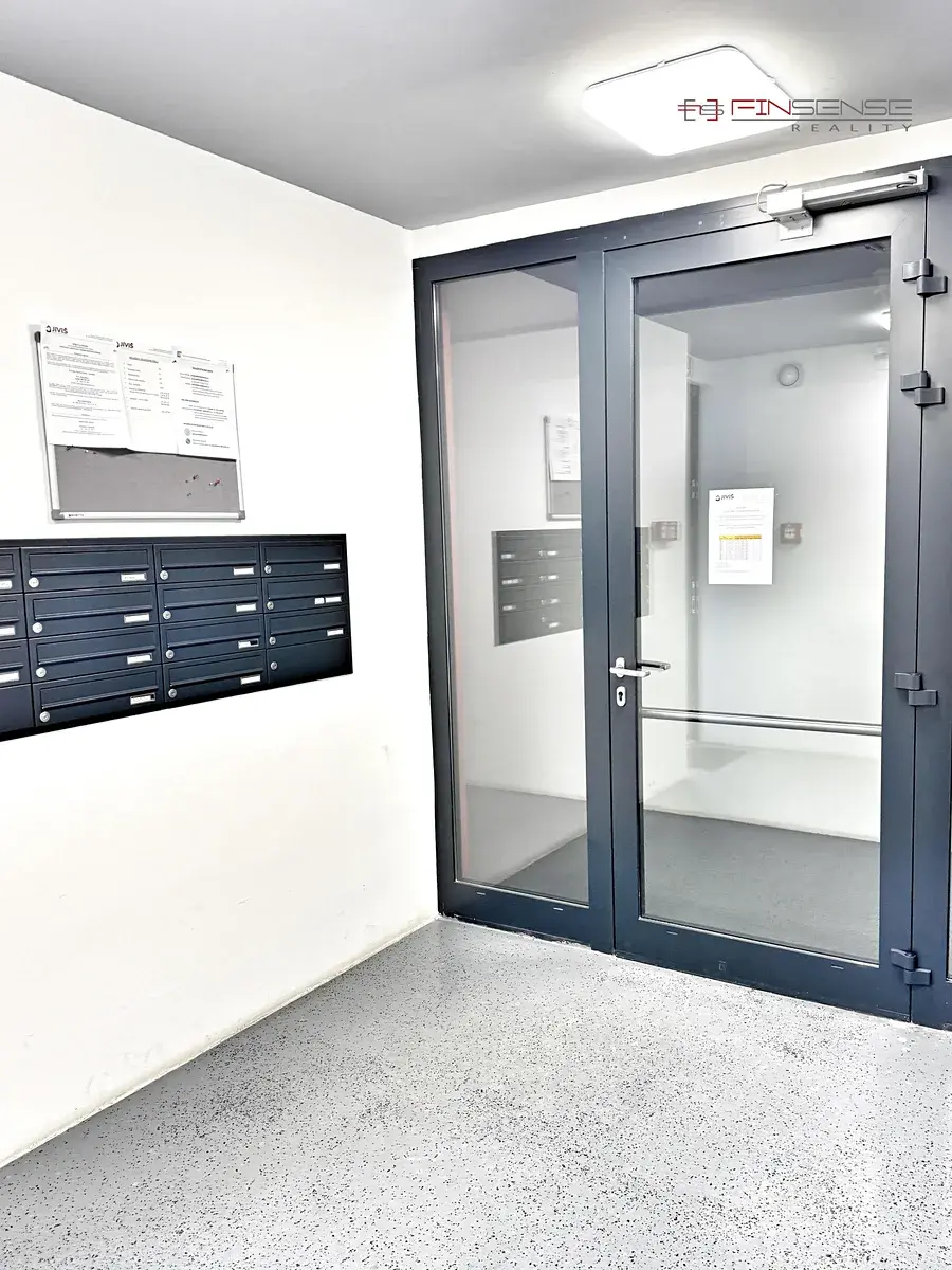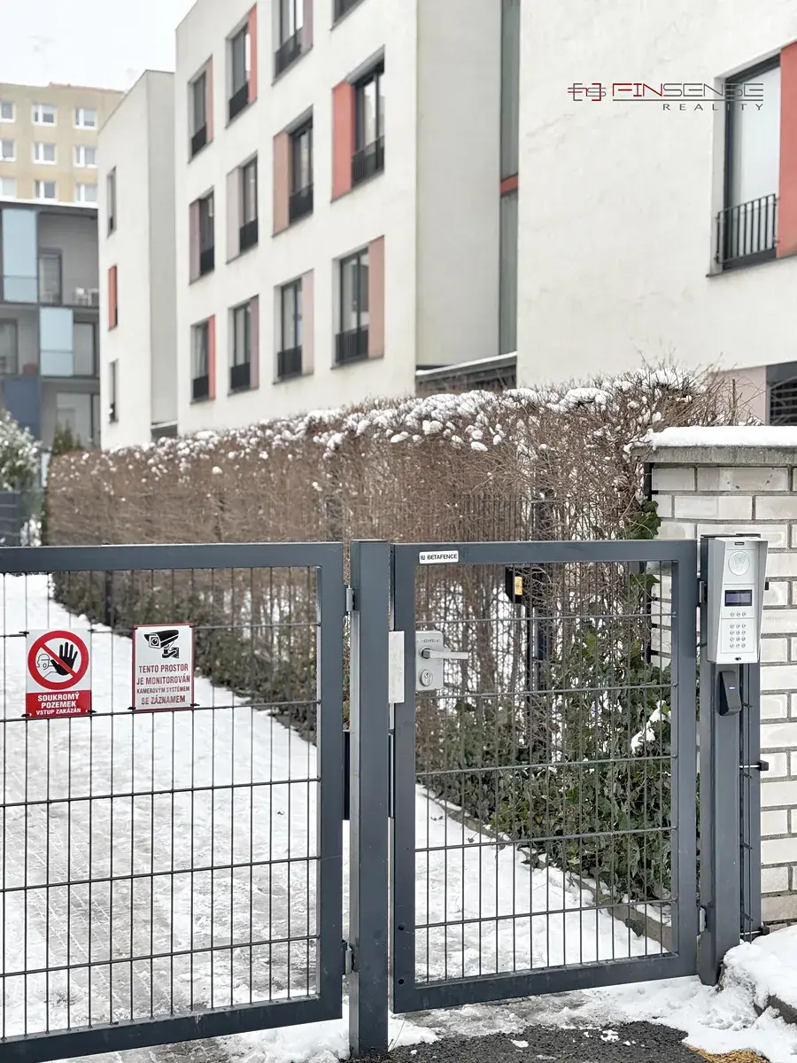 Součástí prodeje je sklepní kóje o velikosti 1,6 m² a vlastní garážové stání v suterénu domu o výměře 14,91 m² včetně stojanů na kola. V domě je výtah a vstupy do domu, garáží i uzavřeného vnitrobloku jsou zabezpečeny čipovým systémem pouze pro rezidenty.