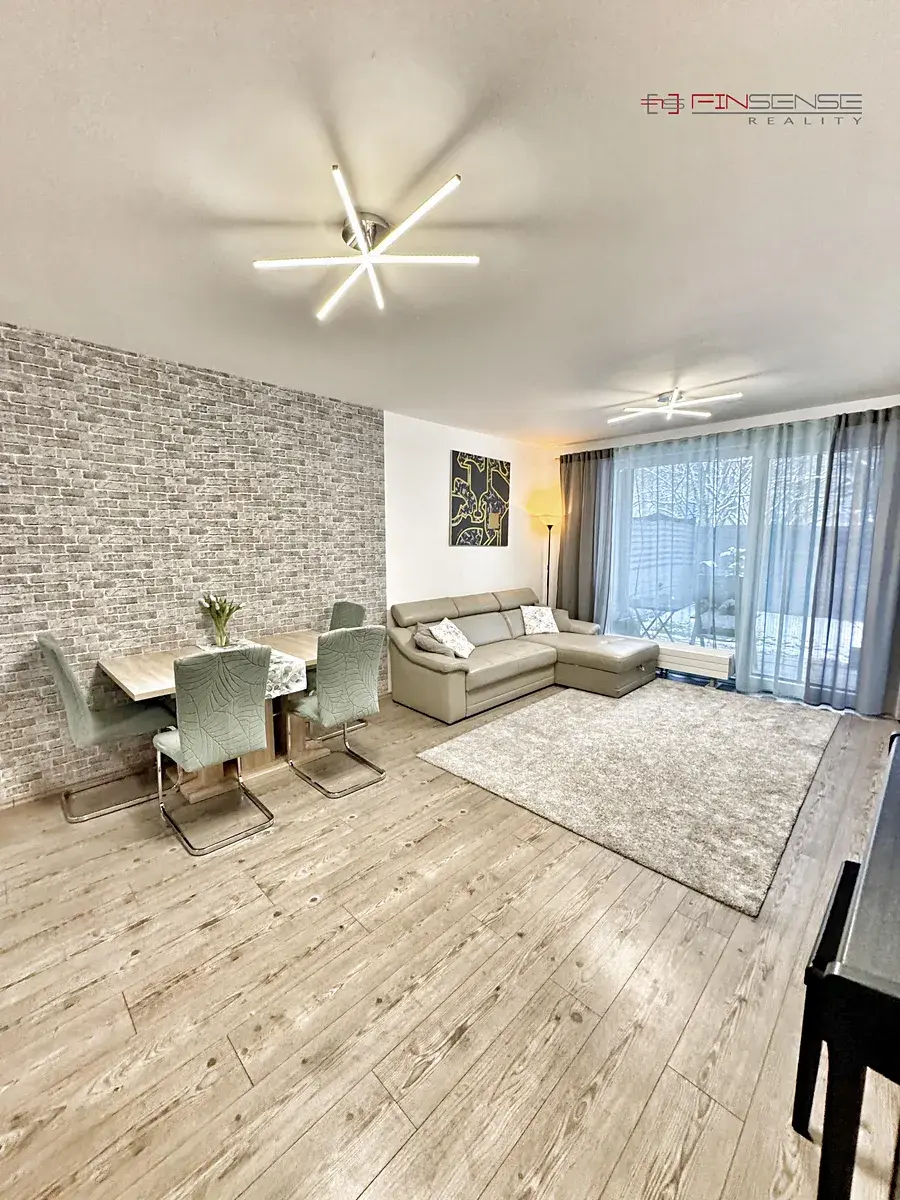 Výjimečnost této nemovitosti spočívá v soukromé zahradě s terasou vedenou po celé délce bytu, která nabízí klid a dostatek soukromí. Francouzská okna ve všech obytných místnostech zajišťují přímý vstup na terasu a do zahrady a zároveň přivádějí do interiéru dostatek denního světla.