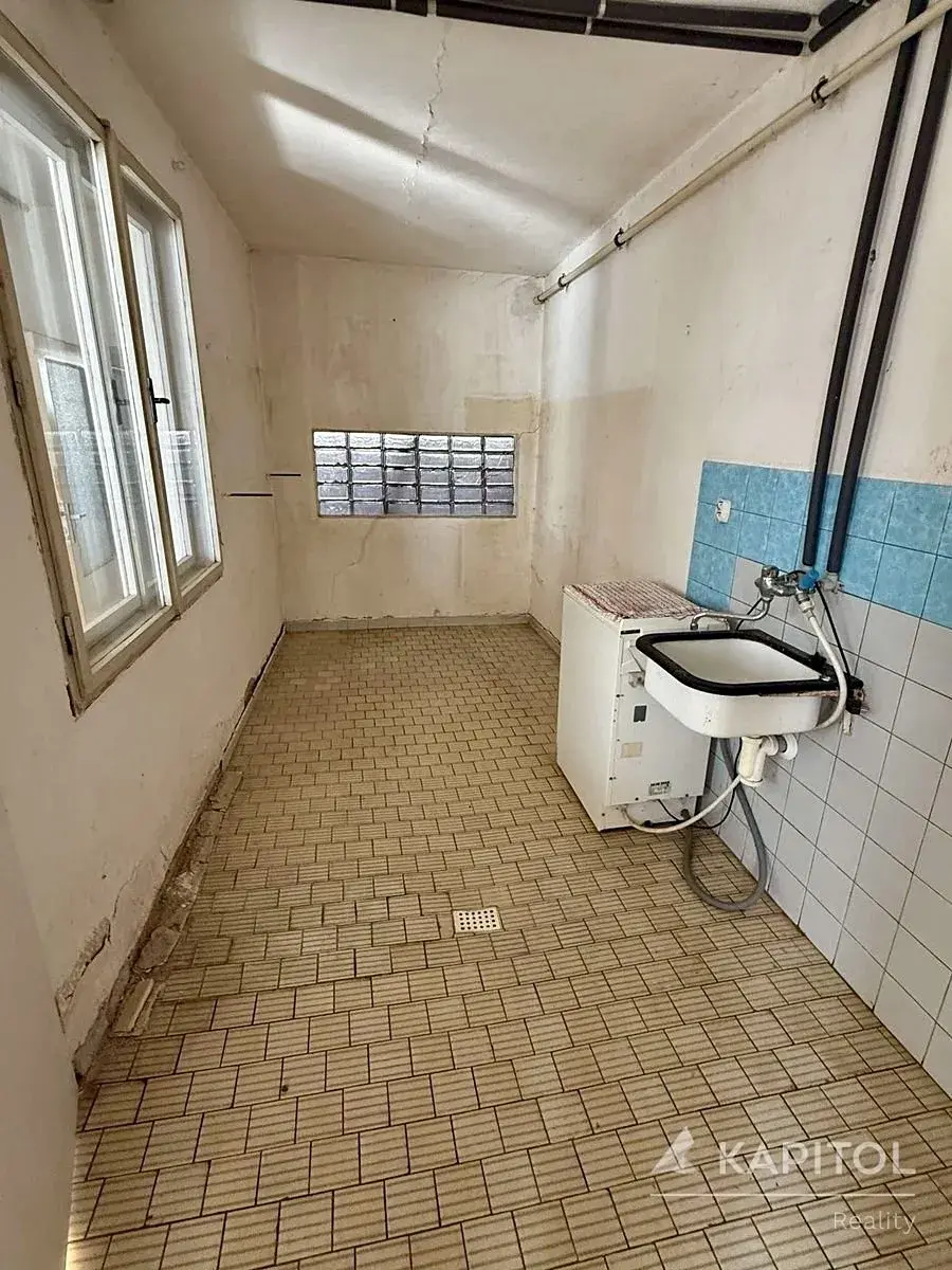 •Prádelna s umyvadlem, odtokovým kanálkem a pračkou