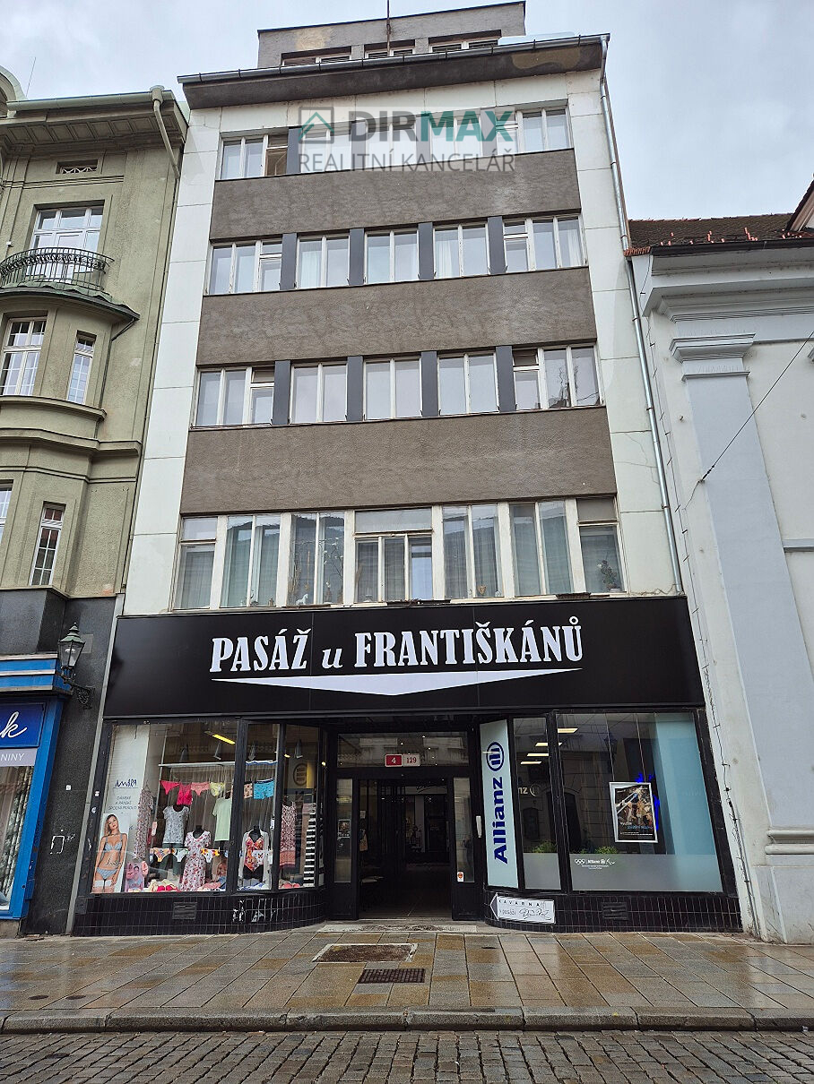 Ve výhradním zastoupení Vám nabízíme pronájem pěkného a klidného bytu 1+1 o celkové podlahové ploše cca 38 m2, který se nachází v 1. patře cihlového domu, přímo v historickém centru města ve Františkánské ulici, vchod pasáží. Dům je zabezpečený kamerovým systémem. Byt je pronajímán nevybavený a nezařízený, v kuchyni je pěkná kuchyňská linka, sporák s plynovými hořáky a elektrickou troubou, je zde přípojka na pračku a myčku. Z kuchyně se vstupuje do malé koupelny s umyvadlem a sprchovým koutem. Samostatné wc je přístupné z předsíně.