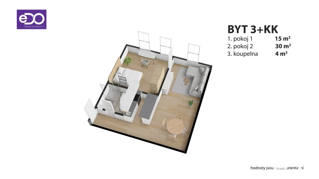 Užitná plocha: 48,79 m² + sklep cca 4,5 m²