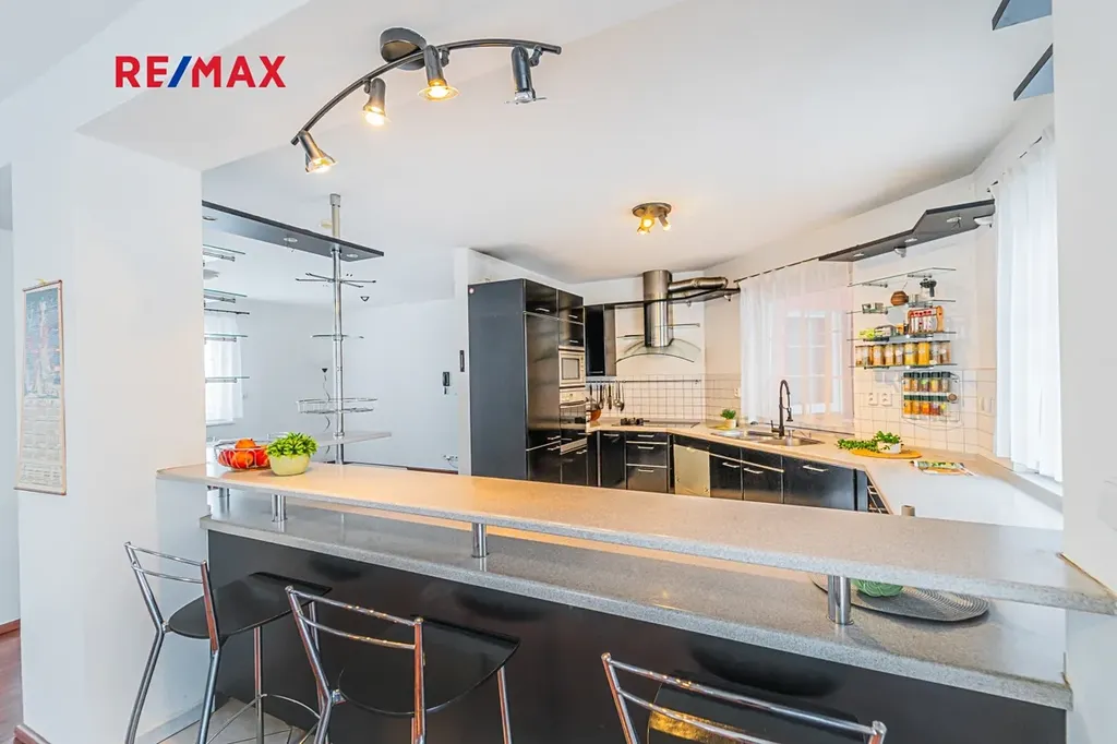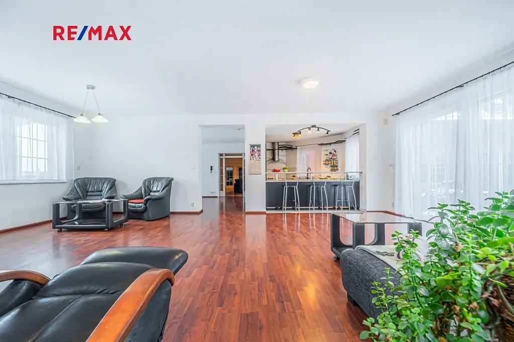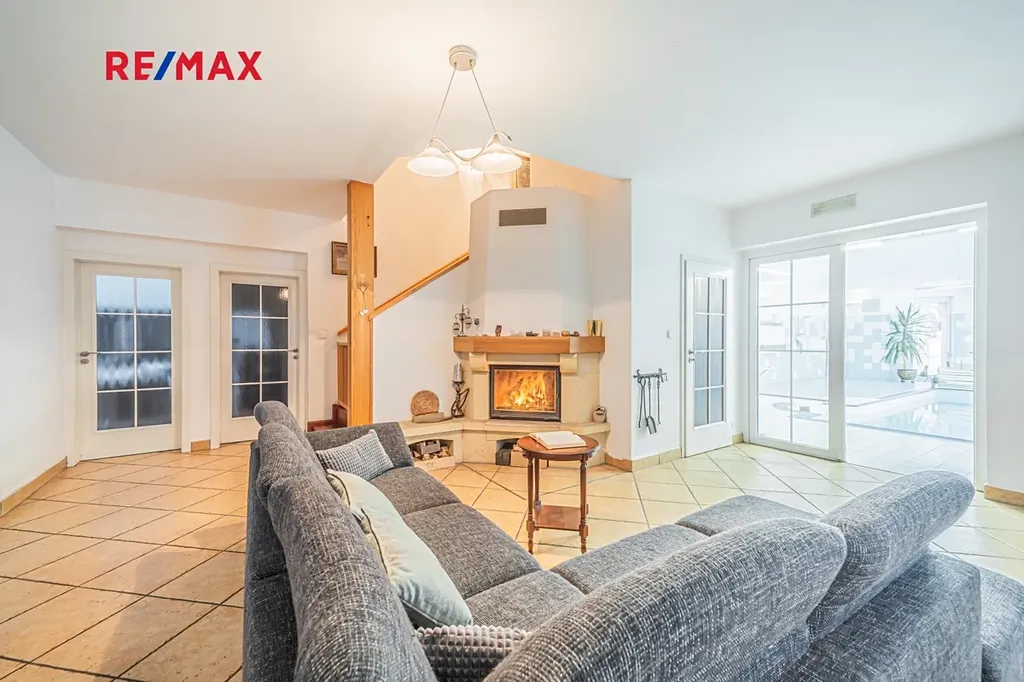Nabízíme Vám ke koupi podsklepený rodinný dům 6+2 (774 m2) s vnitřním bazénem, garážemi až pro 6 automobilů a zahradou s okrasným jezírkem na velmi klidném místě v blízkosti lesa v obci Žilina (u Kladna).