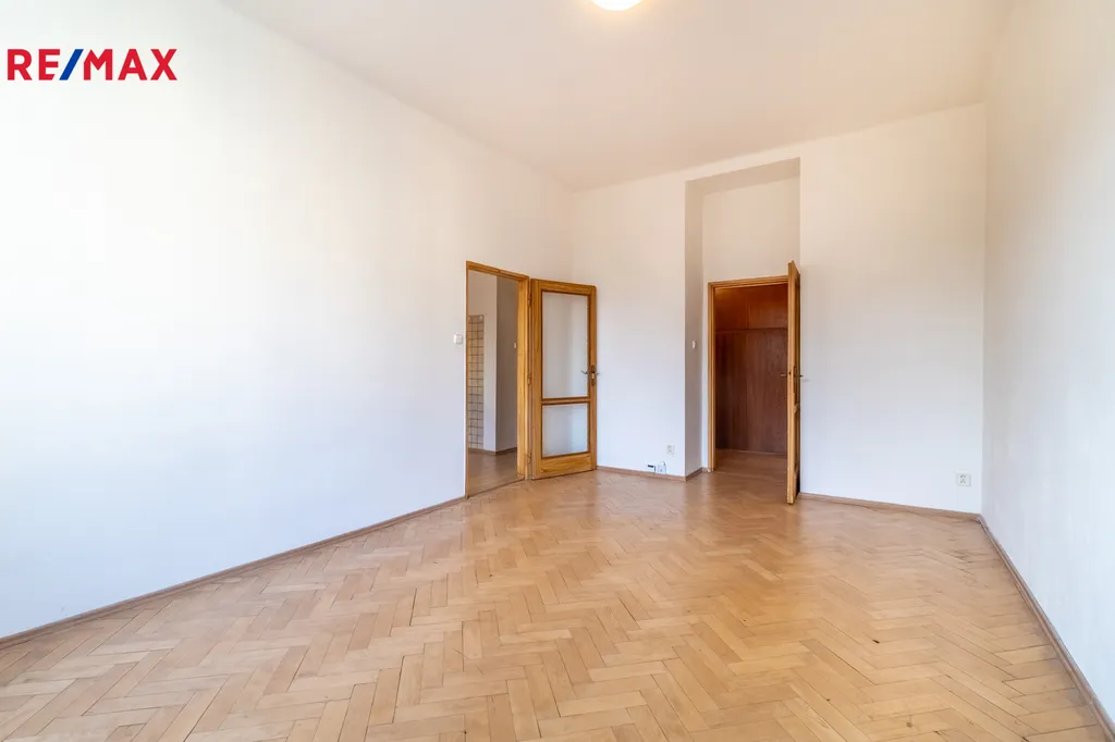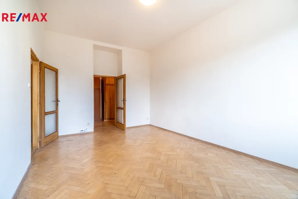 Toaleta je samostatná. V obytných pokojích jsou renovované parketové podlahy, které bytu dodávají příjemný charakter.