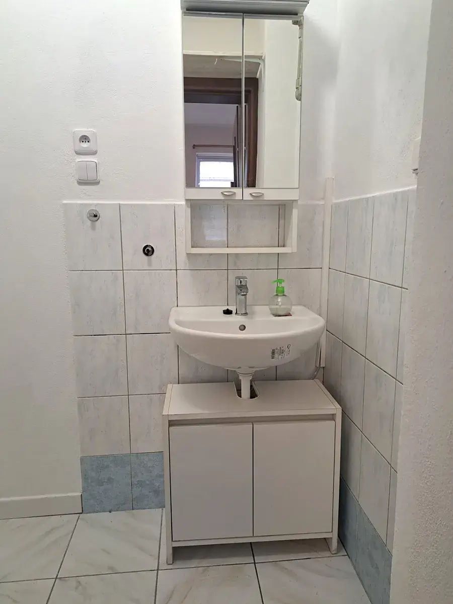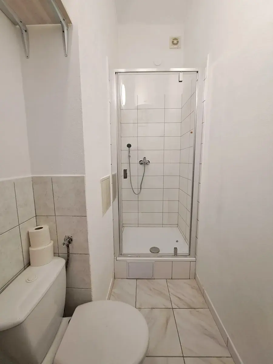 Byt se stává z obývacího pokoje s kuchyňským koutem. Kuchyňská linka je vybavena elektrickým sporákem, ledničkou a pračkou. Dále se v bytě nachází koupelna se sprchovým koutem a WC.