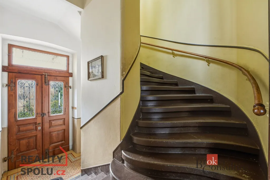 Dům nabízí velkorysé místnosti, vysoké stropy a dostatek denního světla. Jedná se o masivní zděnou stavbu s výraznou architekturou.