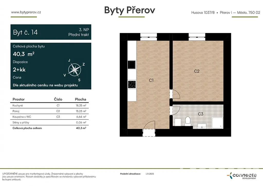 Dispozice: 2+kk, 40,3 m2