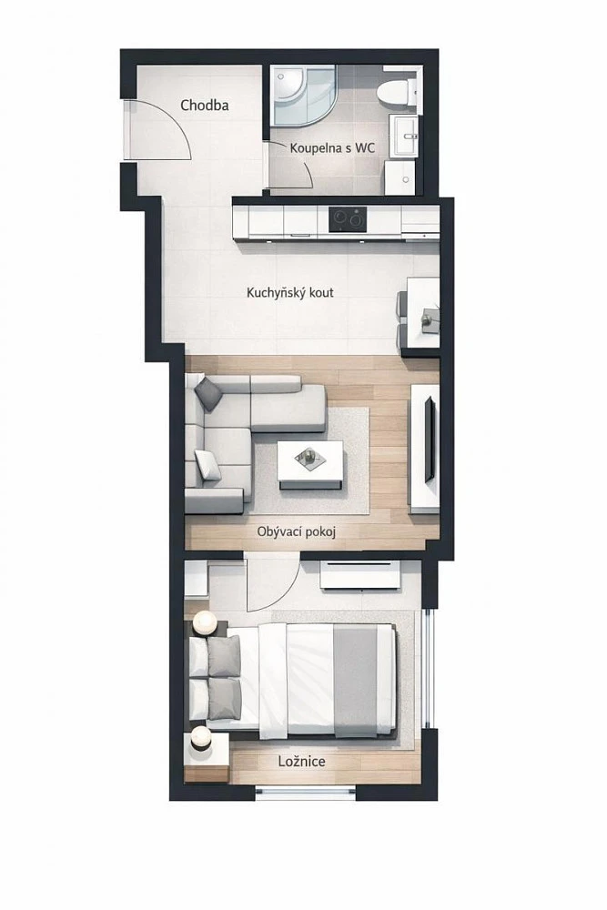 Byt se podnajímá bez nábytku, předmětem podnájmu je kuchyňská linka.