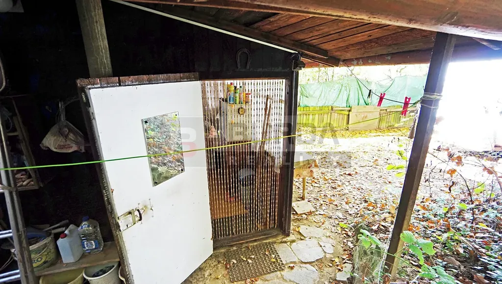 V 1. kůlně je koupelna s vanou a uložena nová kamna na PB bombu. Ohřev vody do vany je možný plynovými kamny na PB bombu, kamna jsou nová ještě nepoužitá.