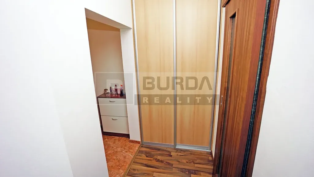 V chodbě je vestavěná skříň. Šatní skříň v ložnici může zůstat, dle dohody. Ostatní nábytek v bytě nezůstane.