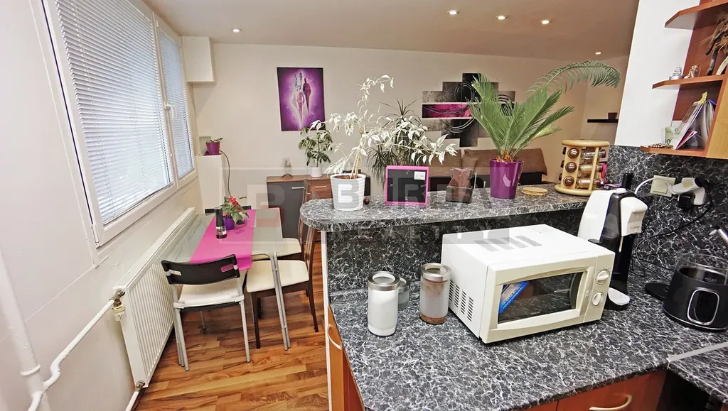 Byt byl před rokem 2017 zrekonstruovaný, bytové jádro bylo vyzděno z cihel Ytong, rozvedeny nové elektroinstalace, položeny nové podlahy, stěny v obývacím pokoji byly obloženy sádrokartonem a na stropě jsou sádrokartonové podhledy s bodovkami.