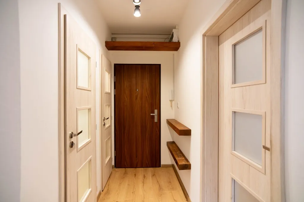 Bylo zbourané původní umakartové jádro, díky čemuž vznikla větší koupelna se sprchovým koutem a toaletou.