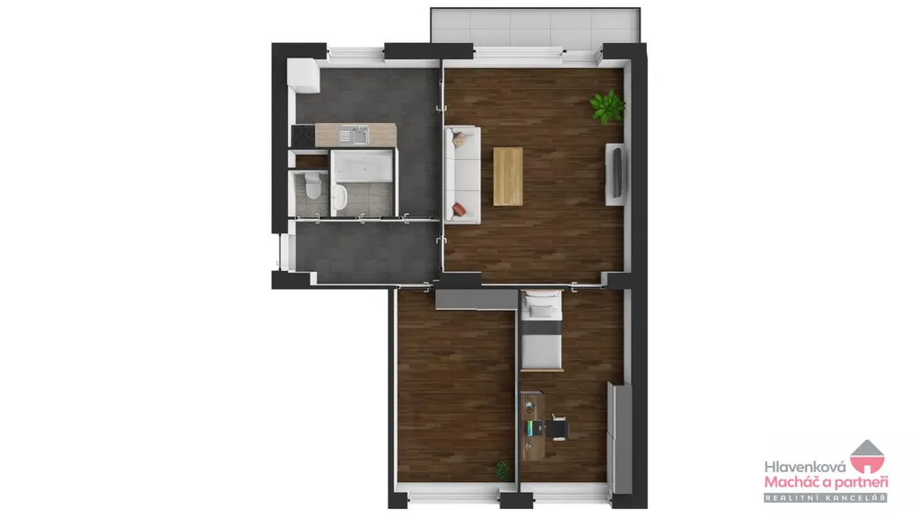 Mezi pokojem 1 a 2 je pouze příčka, takže lze velmi snadno upravit dispozici na komfortní a nadstandardně prostorné 2+1.