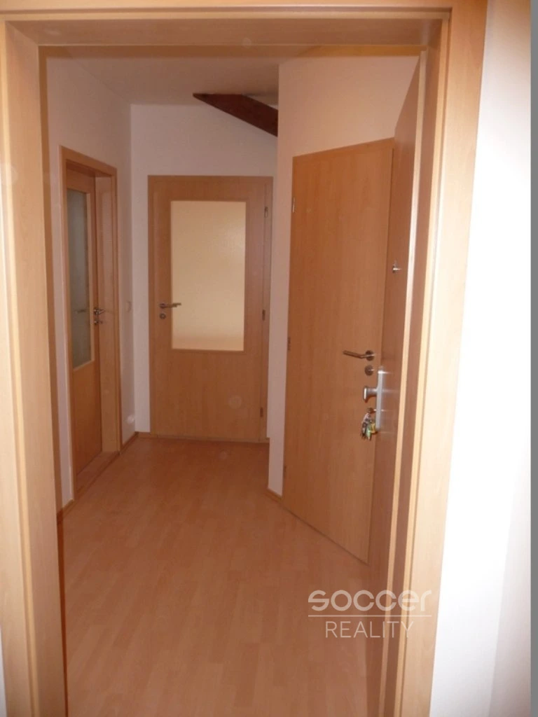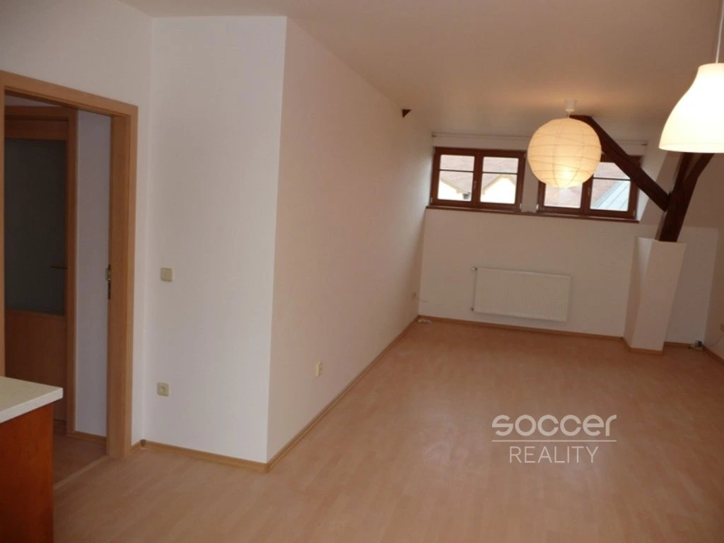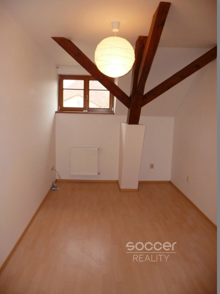 Skládá se z (1 místnost s kuchyňským koutem +1 pokoj, předsíň, koupelna s rohovou vanou. V koupelně ještě je umývadlo a přípojka na pračku, samostatné WC s umývadlem ). Kuchyňský kout je zařízený (kuchyňská linka, elektrická varná deska, elektrická trouba, digestoř). Na podlaze položena plovoucí podlaha a lamino, WC a koupelna keramické dlaždice. Dřevěná EURO okna (izolační trojskla (do ulice) a střešní okna VELUX (směrem k náměstí). Parkování modrá zona I. (360 Kč/rok) vedle domu nebo parkovací dům 30 metrů.