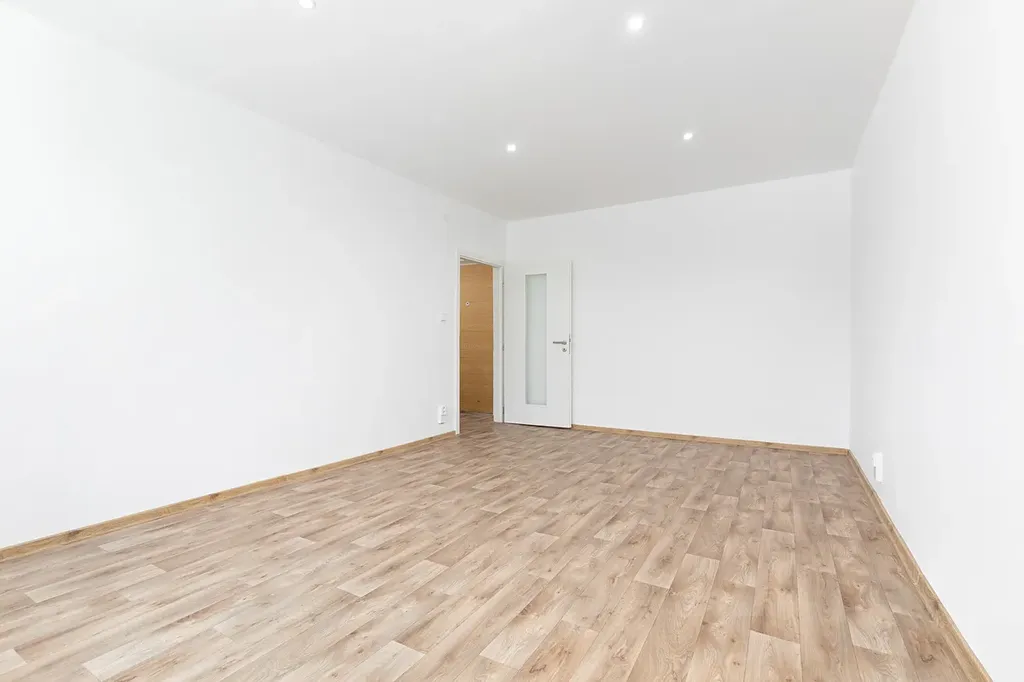Základem rekonstrukce je kompletně vyzděné bytové jádro, nová elektroinstalace, podlahy v celém bytě jsou srovnané do jedné roviny. Podlahová krytina je vinylová. Nové jsou také interiérové dveře vč. zárubní.