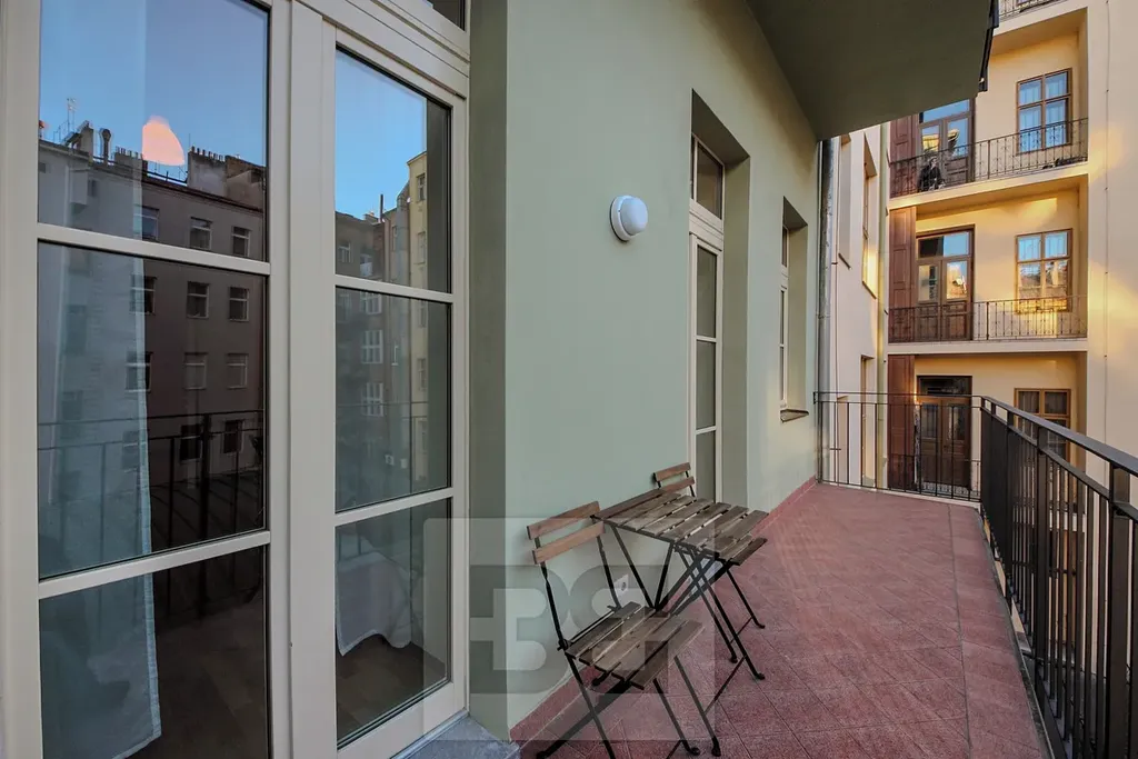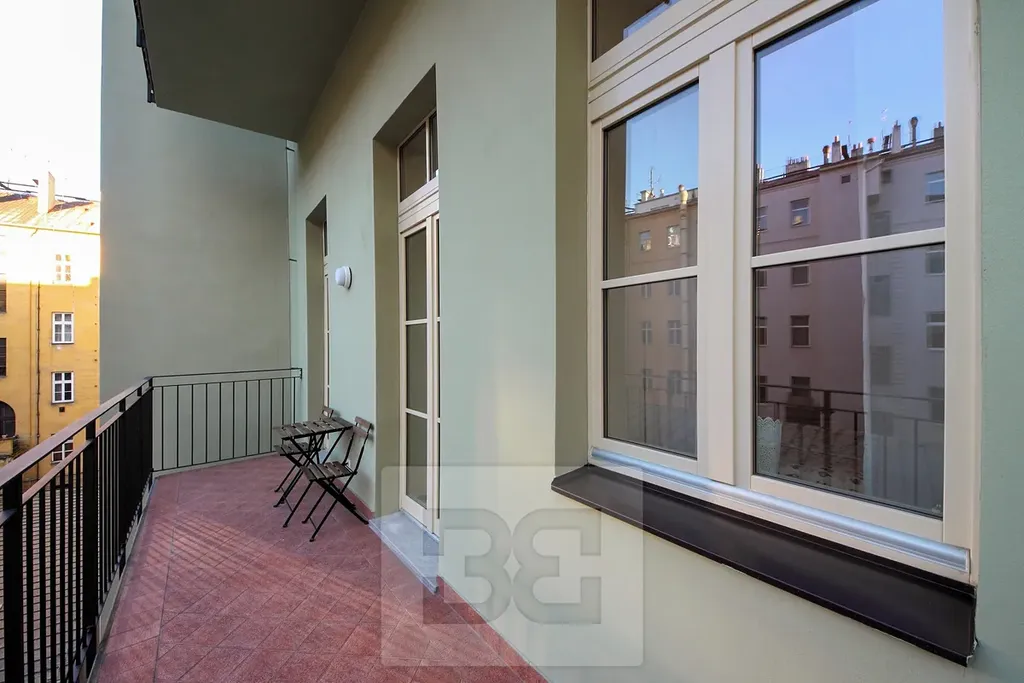 Exkluzivně nabízíme k dlouhodobému pronájmu byt 3+1 (103m2) s balkonem (8m2) situovaný ve druhém patře historického domu s výtahem na Praze 2, ul. Mánesova (nachází se v klidné nehlučné zóně v ulici Mánesova, jen kousek od výborných restaurací a příjemných barů). Byt je částečně vybavený nábytkem (viz foto) a se sestává z prostorné předsíně, odkud je vstup do dvou ložnic a obývacího pokoje s rozkládací sedačkou, lenoškou a velkoplošnou obrazovkou, který je propojen s jídelní sestavou pro 6 hostů. V kuchyni je plně vybavená kuchyňská linka všemi spotřebiči. Dostanete se odsud také na velký balkon směrovaný do vnitrobloku, kde si můžete posedět u sklenice vína a relaxovat.