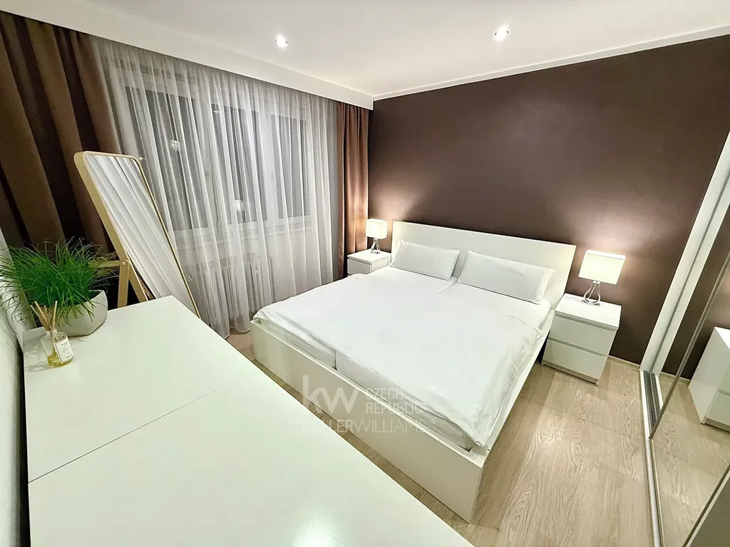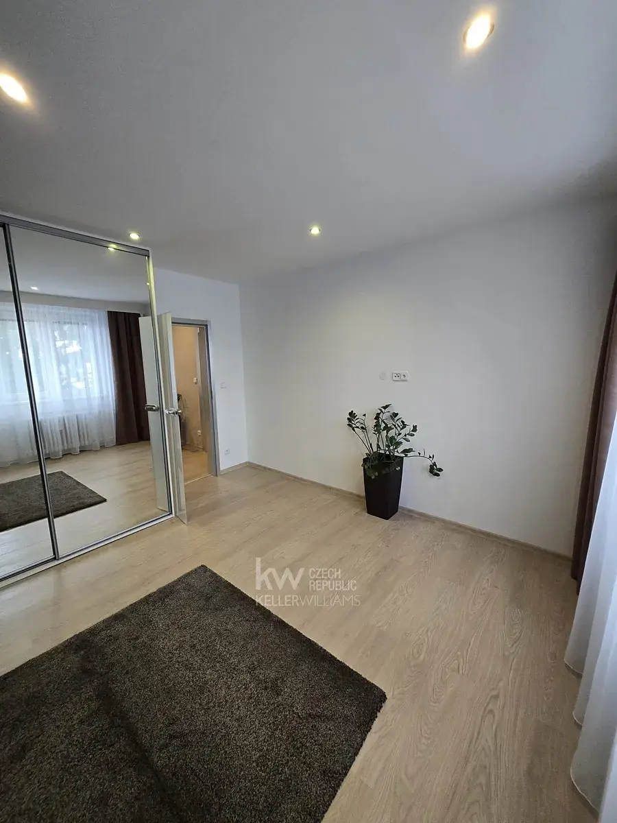 Byt je promyšlený tak, aby dával smysl v běžném dni: kuchyňský kout navazuje na obytný prostor, ložnice drží potřebný klid a severo-jižní orientace přináší přirozené větrání napříč bytem. Praktickým bonusem je lodžie umístěná „napůl v mezipatře“, což je ideální na sušení prádla nebo případně ranní kávu. Pro práci z domova potěší optika přímo v bytě.