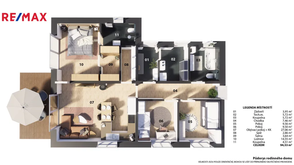 Dispozice 4+kk (123 m²) – dostatek prostoru pro dětské pokoje i pracovnu