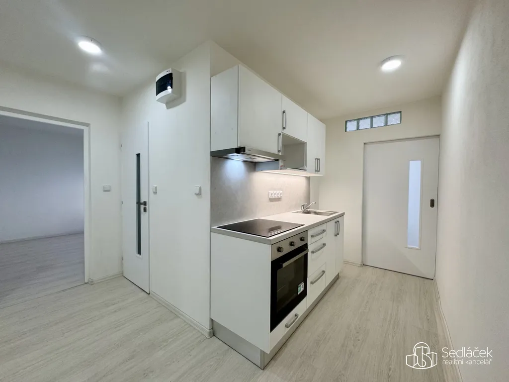 Dispozice bytu nabízí obývací pokoj se vstupem na balkon s nerušeným výhledem, neprůchozí pokoj a samostatnou kuchyň vybavenou kuchyňskou linkou s vestavěnými spotřebiči (elektrická trouba a varná deska). Koupelna je vybavena vanou a toaletou, zároveň je zde připraven prostor pro pračku a sušičku.