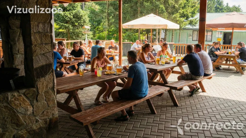 Vlastní občerstvení výrazně zvyšuje tržby a umožňuje obsloužit nejen hosty apartmánů, hosty sousedních ubytovacích zařízení, návštěvníky koupaliště, projíždějící cyklisty a turisty.