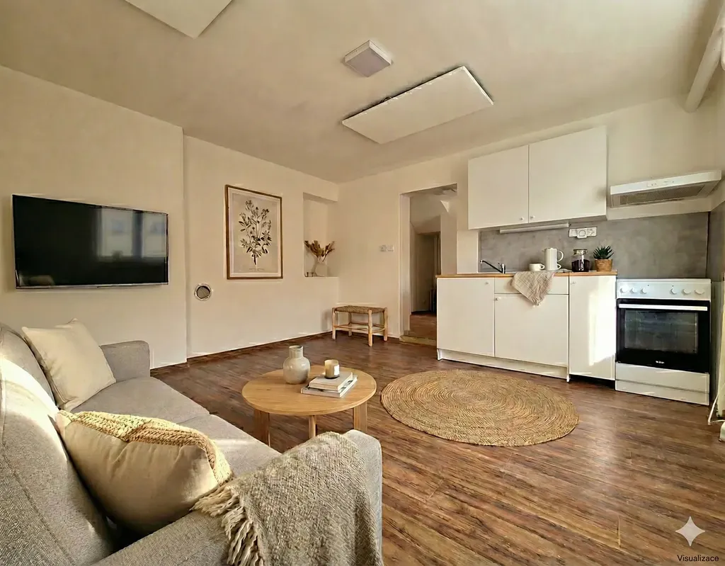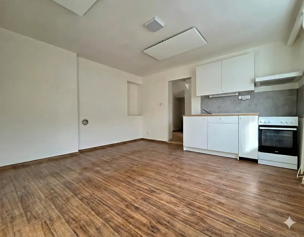 V bytě naleznete malý pokoj určený jako ložnici a pokoj větší, který slouží jako kuchyně s obývacím pokojem dohromady. Součástí bytu jsou i další "místnosti", které lze vhodně využít jako úložný prostor a samozřejmostí je i koupelna s toaletou.