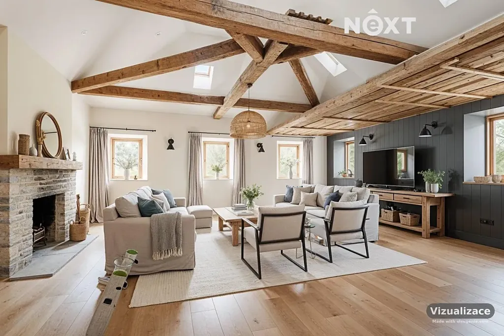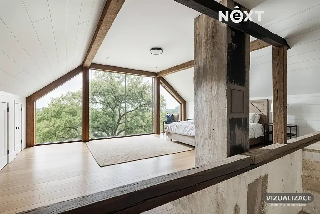 - Stodola: cca 44 m² (původně plánovaná velká terasa nad stodolou)