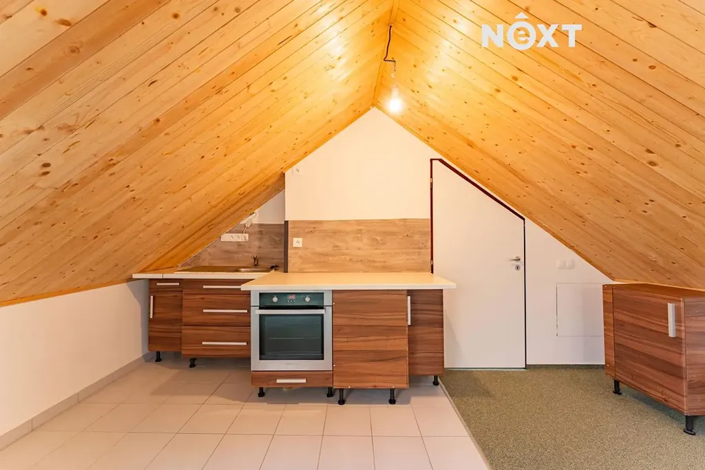 Po vstupu do bytu se ocitnete v chodbě, odkud vede elegantní dřevěné schodiště do hlavní obytné části. Ta nabízí vzdušný prostor s kuchyní propojenou s obývacím pokojem, ze kterého se vstupuje do prostorné koupelny s toaletou a samostatné ložnice. Byt je ideální volbou pro jednotlivce nebo pár, kteří hledají útulné a funkční bydlení s příjemnou atmosférou.