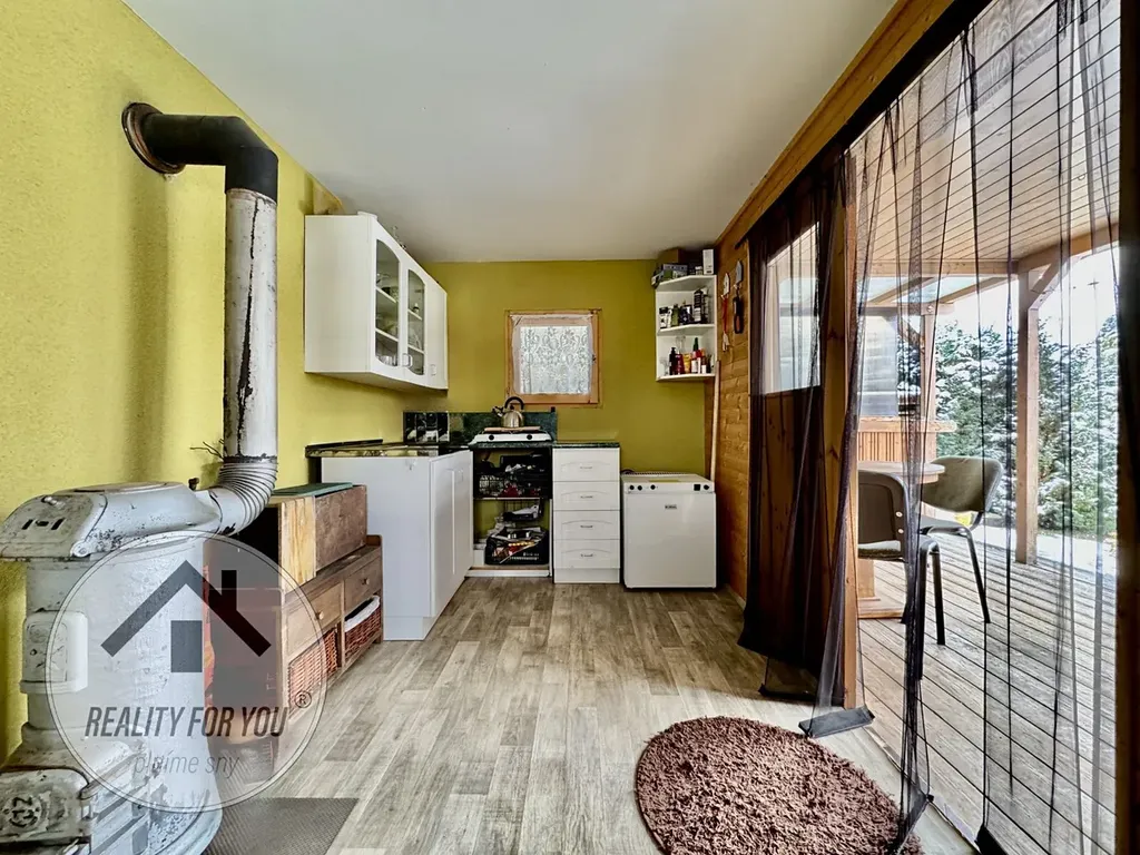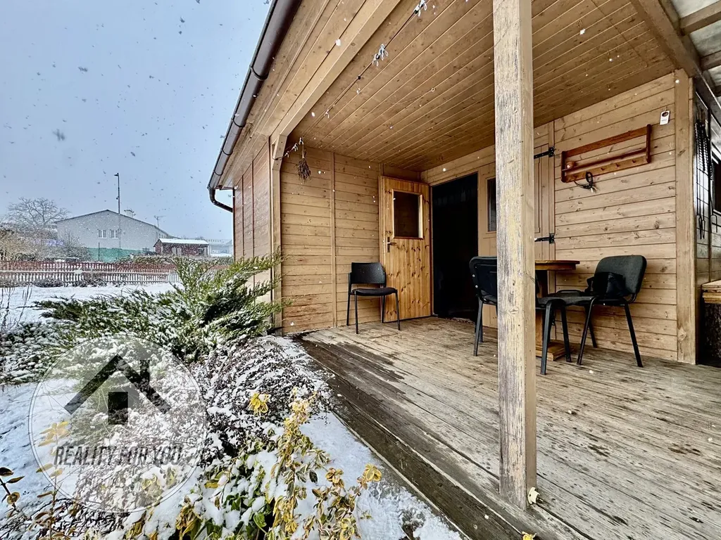 Na pozemku je zánovní stavba dřevěné chatky, která nabízí terasu s příjemným výhledem na zahrádku a obytnou část s kuchyňkou ve tvaru písmene "L". Chatka je dostatečně velká pro trávení volného času, ale i k přespání. Za stavbou se nachází chemická toaleta, sprcha a skládek. Na pozemek je přivedena pitná voda, která je v provozu sezónně.