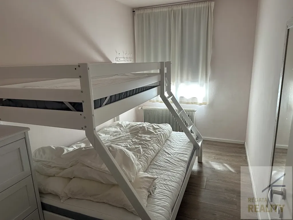 Dobře udržovaný byt se 2 ložnicemi, kuchyní s jídelním koutem, obývacím pokojem, koupelnou/WC a velkým balkonem o celkové rozloze přibližně 69,3 m², v domě pouze se 3 byty.