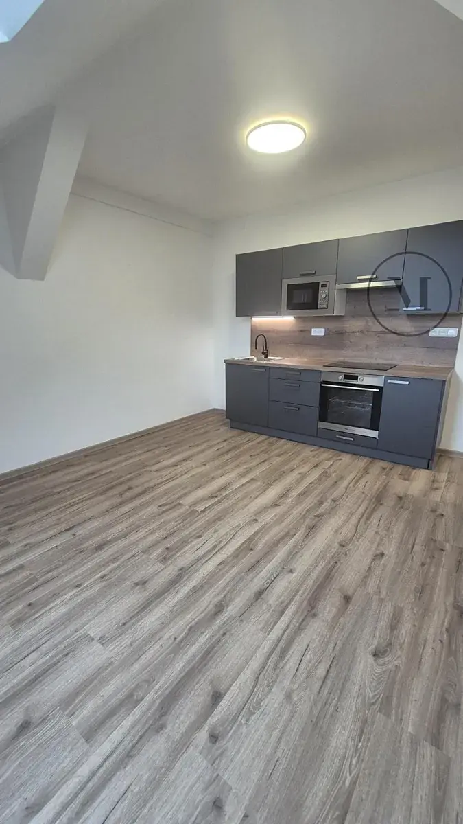 Dominantou bytu je prostorný obývací pokoj s kuchyňským koutem. Moderní koupelna je vybavena sprchovým koutem. Podkrovní charakter bytu vytváří velmi příjemnou atmosféru.