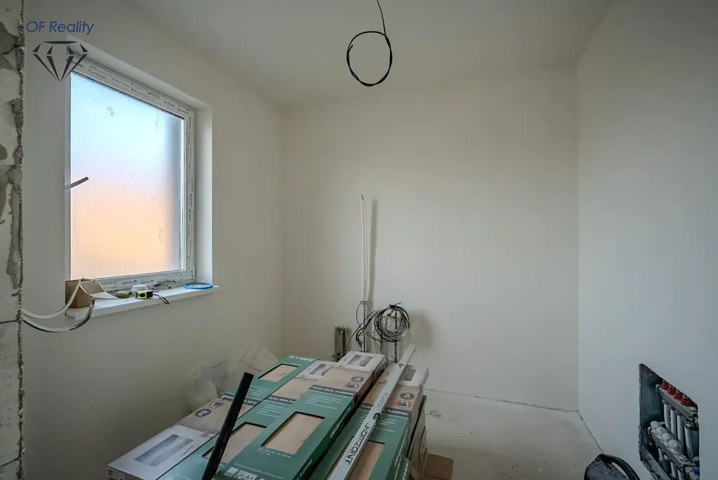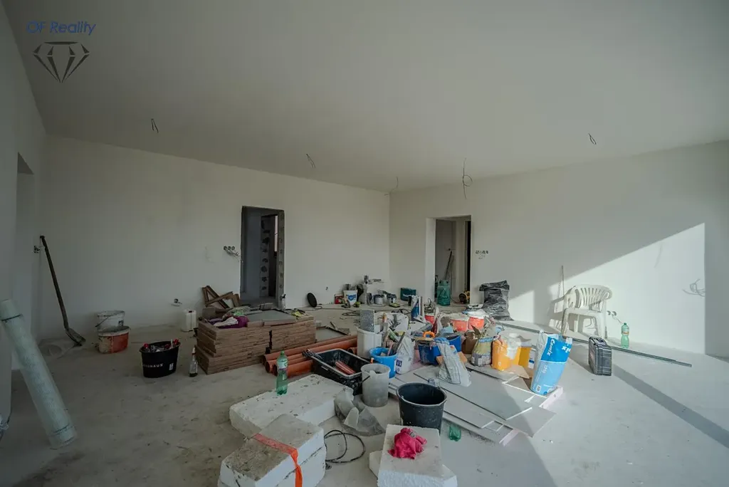 Na domě aktuálně probíhají dokončovací práce, konkrétně pokládka podlah a dlažby. Stále máte možnost vybrat si sanitu podle vlastních představ.